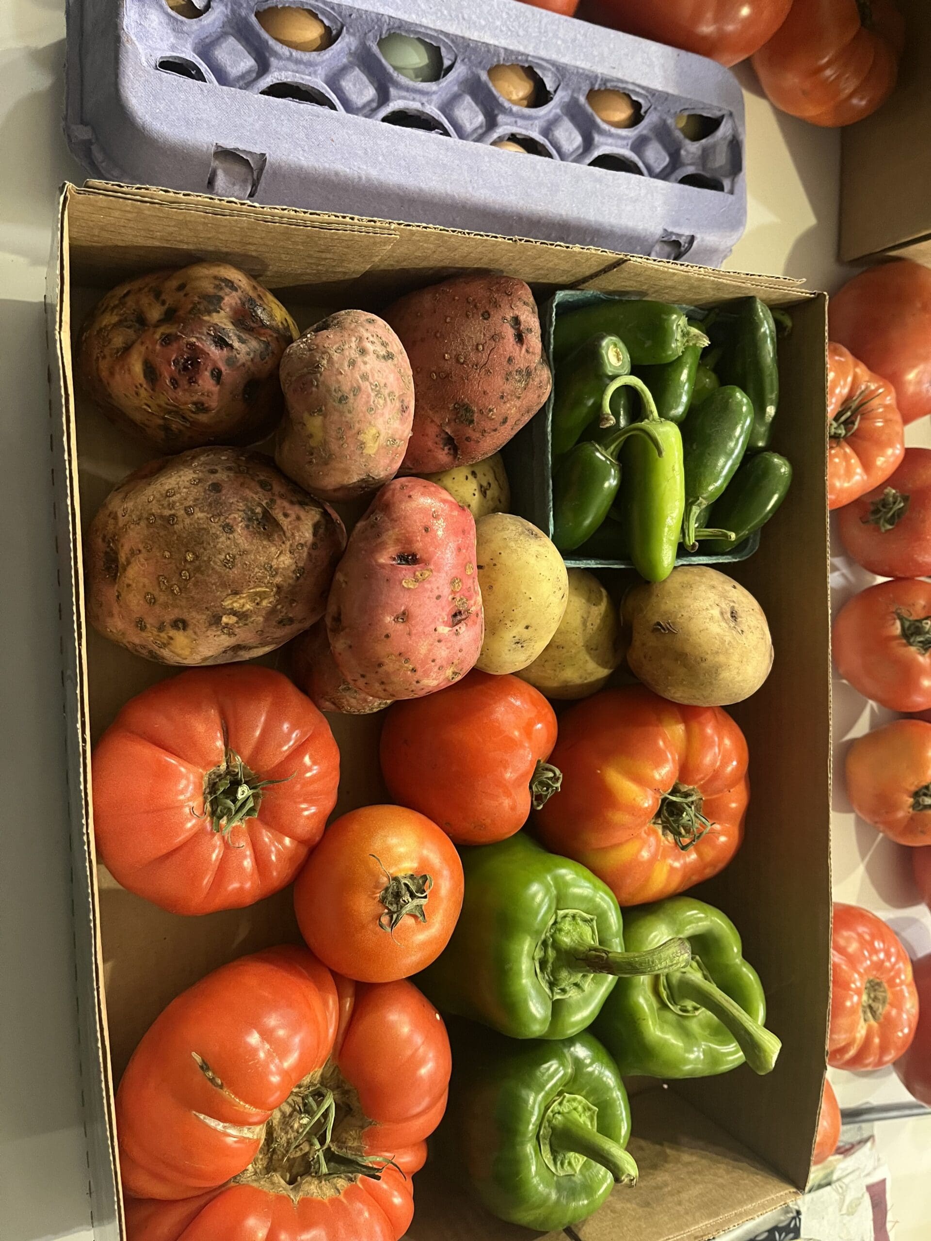 Variety of fruits, vegetables, and herbs from our gardens and high tunnel. Items vary weekly July-October. If you are looking for something specific, just ask!