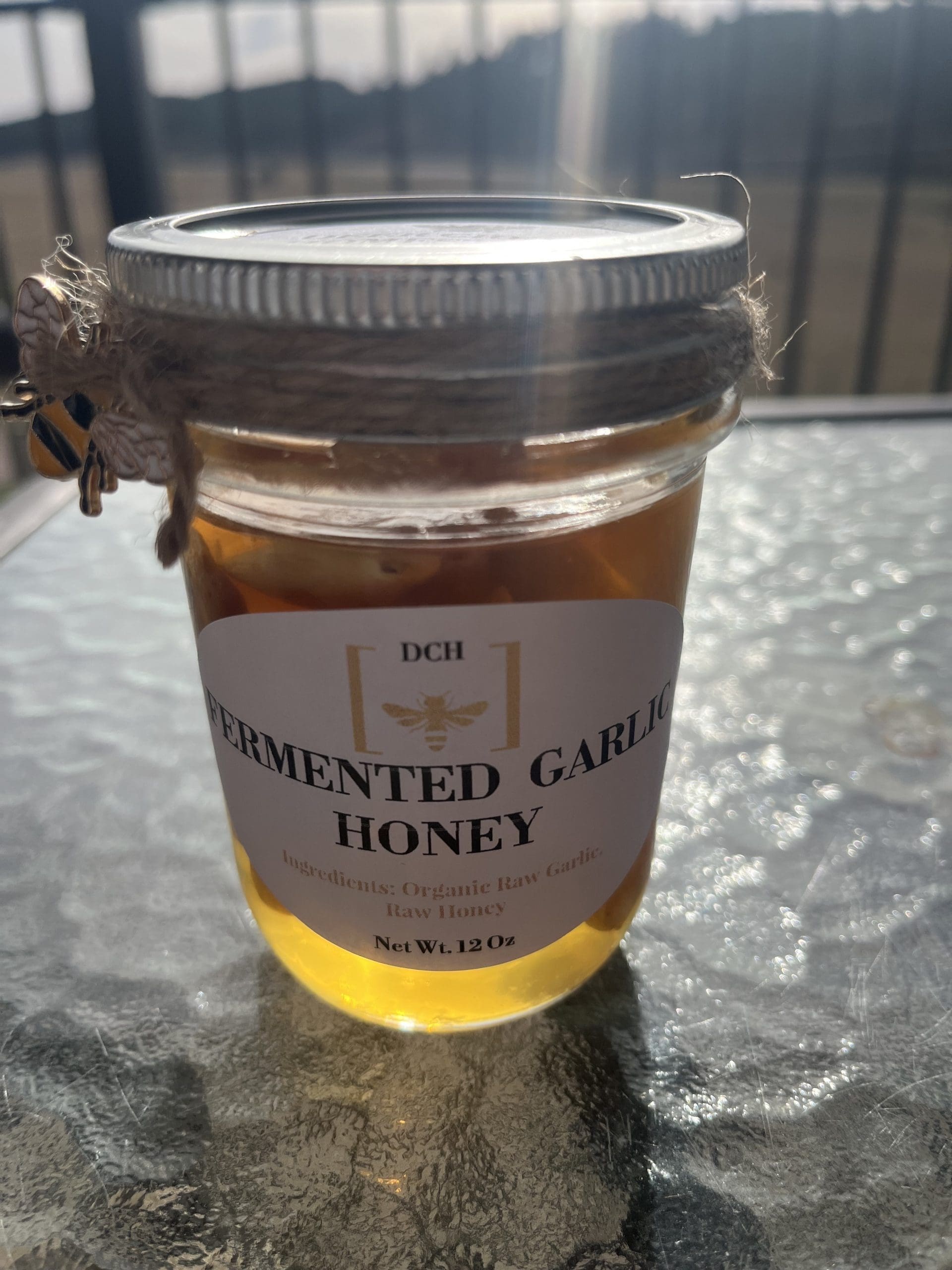 Ingredients: Raw Wildflower Honey harvested from Deer Creek Homestead Hives, Organic Garlic Cloves, Organic Cloves